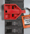 Защелкивающийся блокиратор двуполюсных миниатюрных автоматов, имеющих соединительную поперечную планку. Позволяет навесить один замок, с диаметром дужки не более 7 мм.